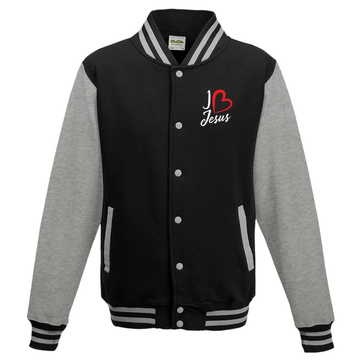 I love Jesus Heart JHA043 AWDis Mens Letterman Jacket