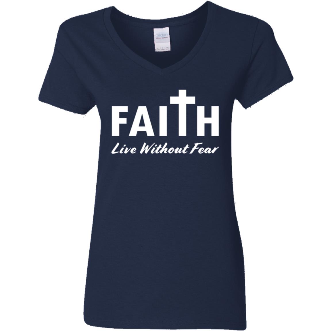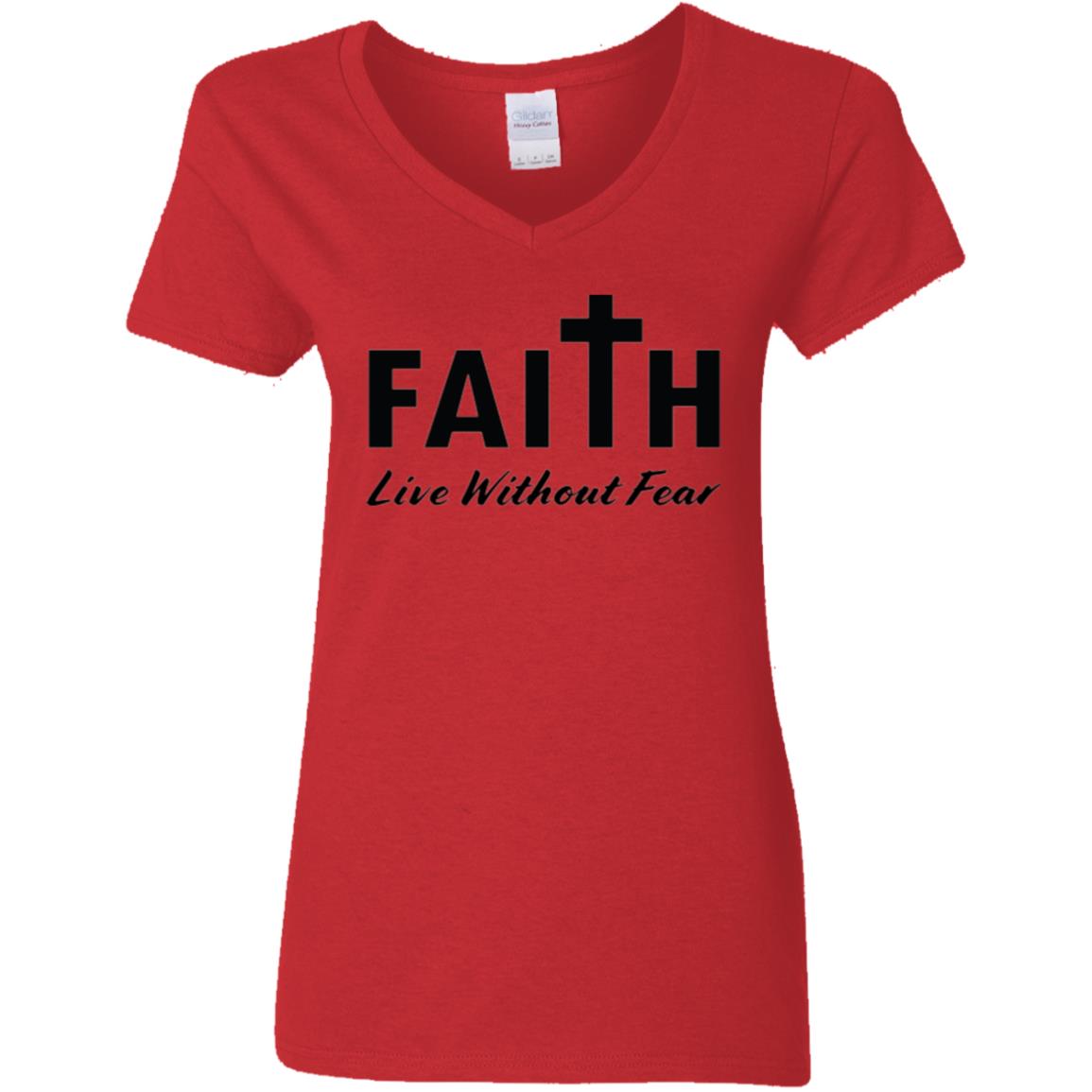 Faith, Live Without Fear G500VL Ladies’ 5.3 oz. V-Neck T-Shirt