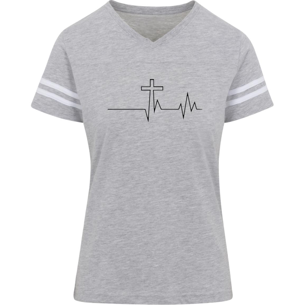 Christian Cross With Heartbeat 3537 LAT Womens Football Tee