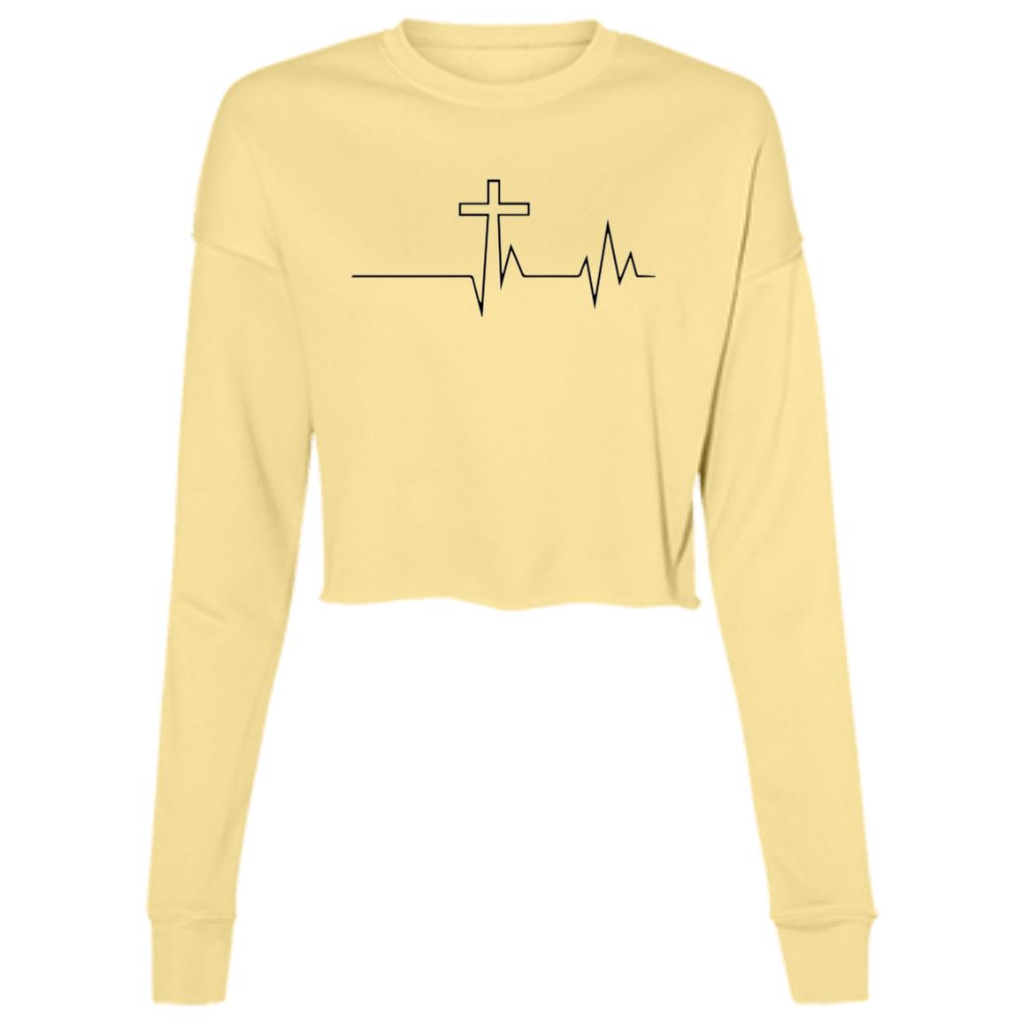 Christian Cross With Heartbeat B7503 Ladies’ Cropped Fleece Crew
