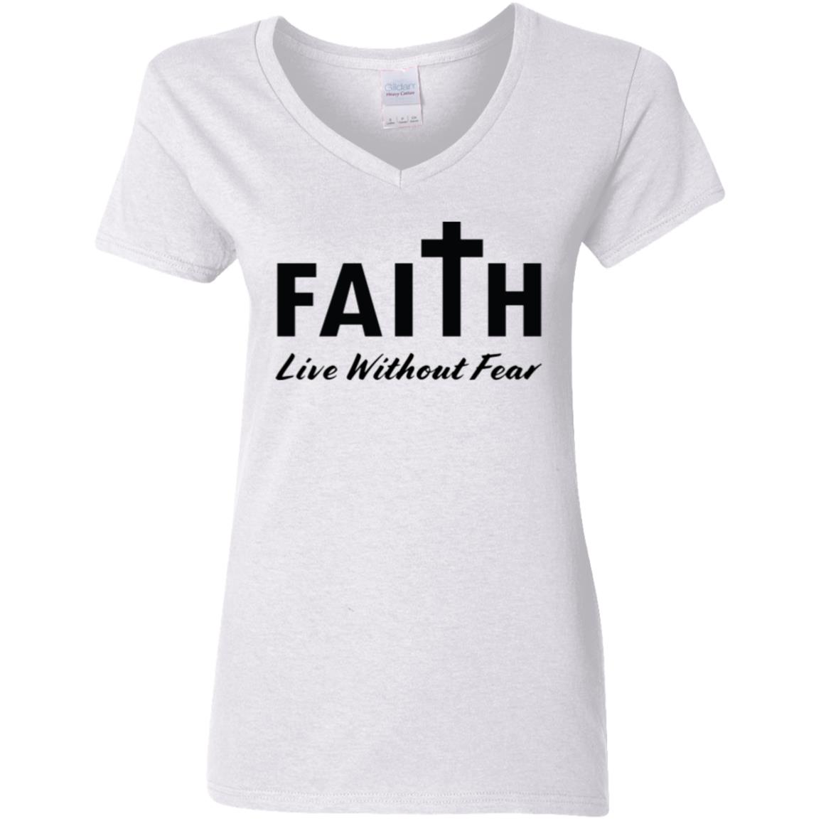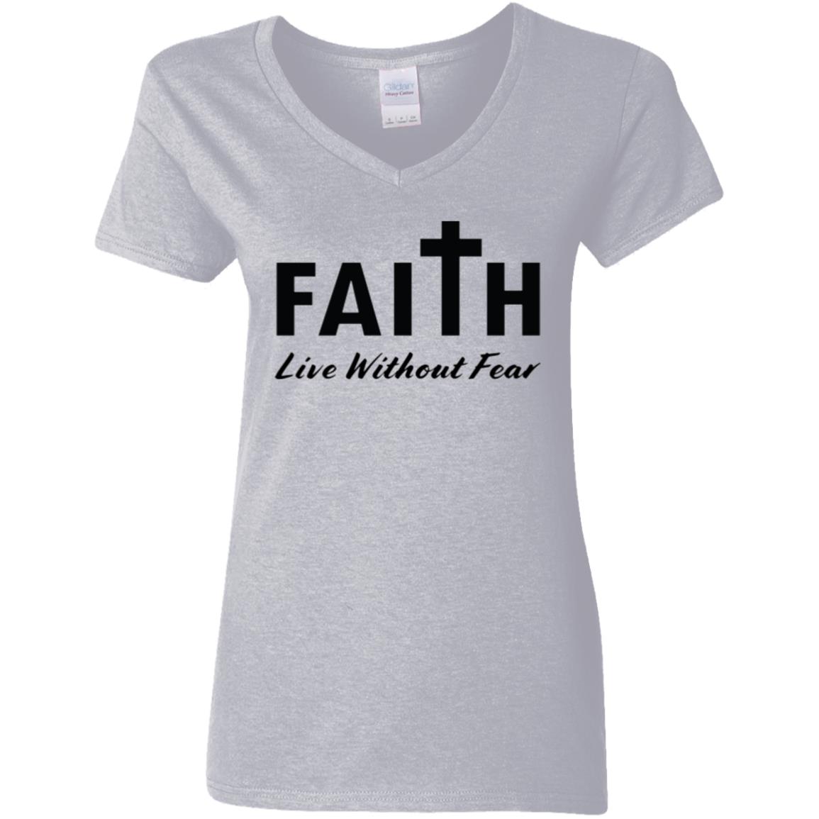 Faith, Live Without Fear G500VL Ladies’ 5.3 oz. V-Neck T-Shirt