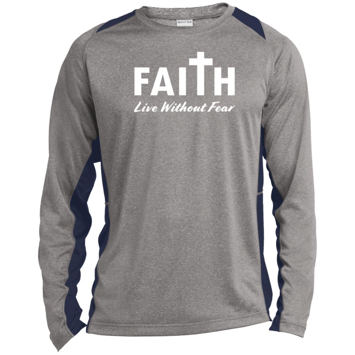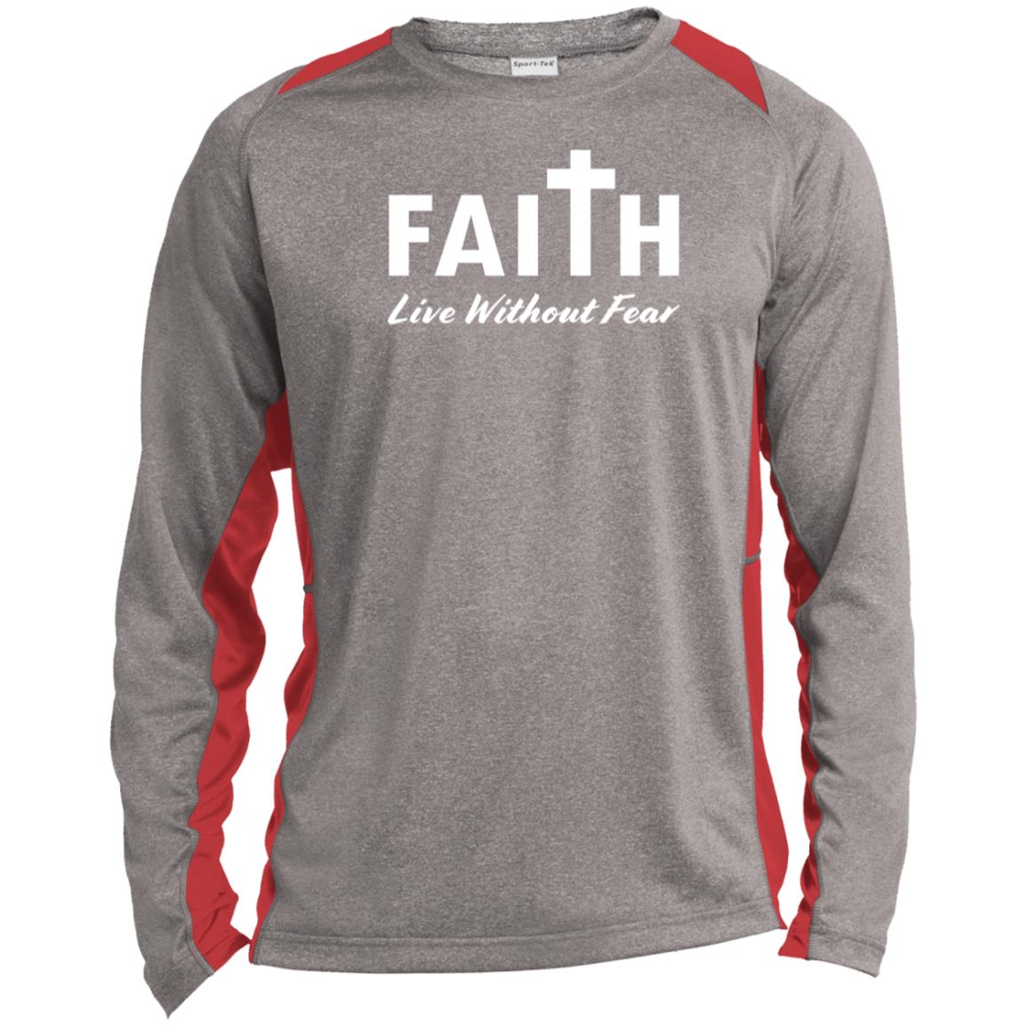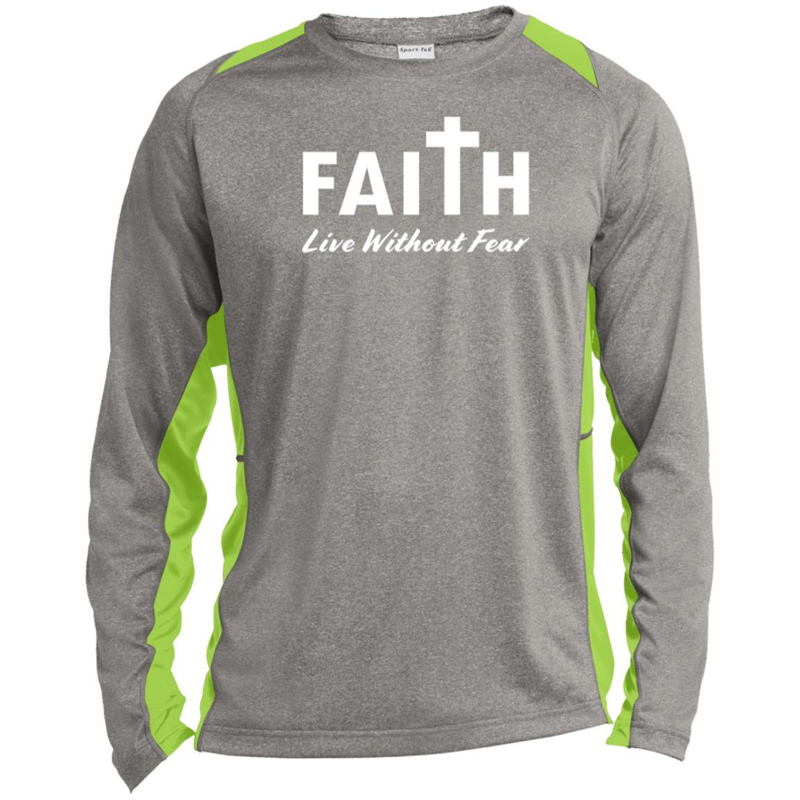 Faith, Live Without Fear ST361LS Long Sleeve Heather Colorblock Performance Tee