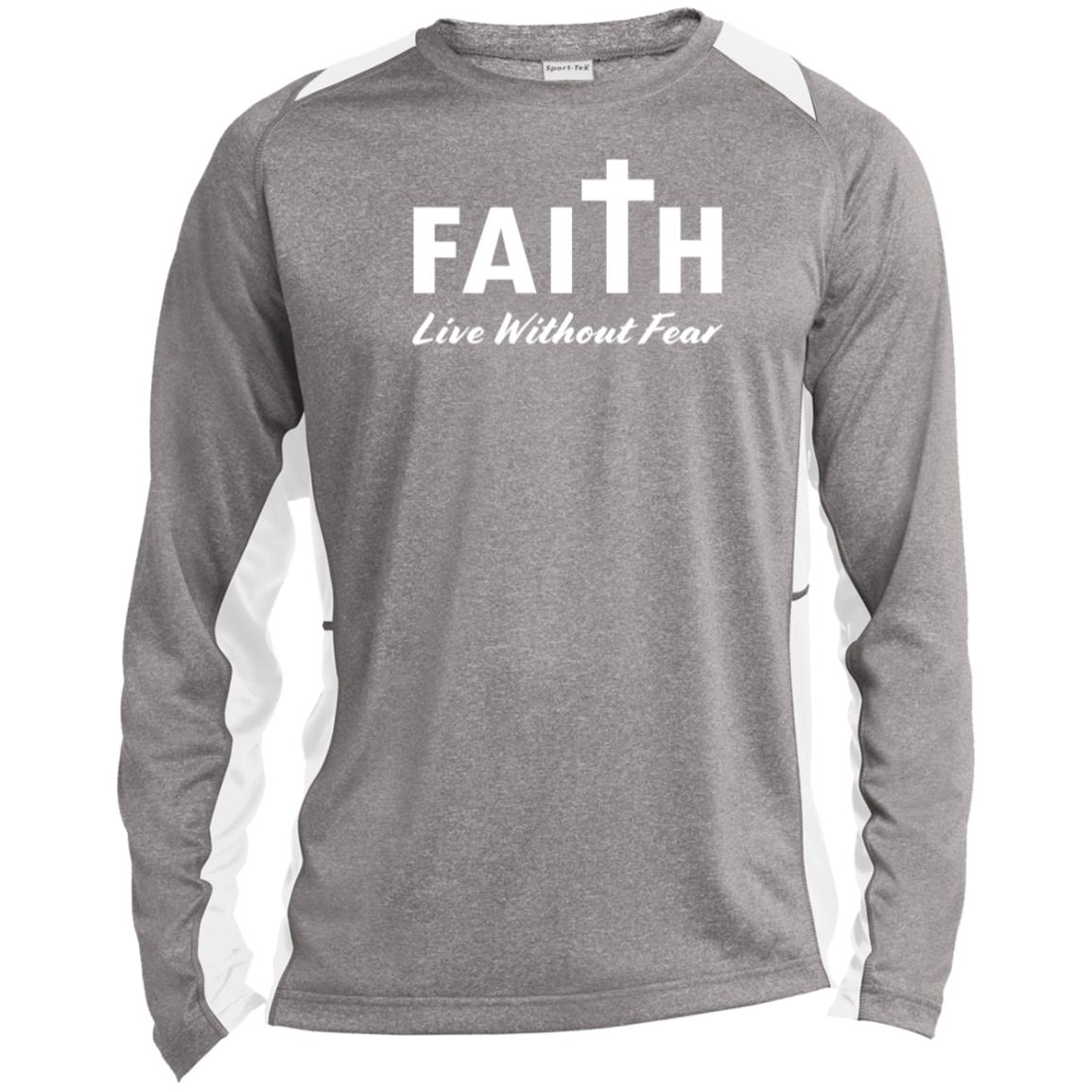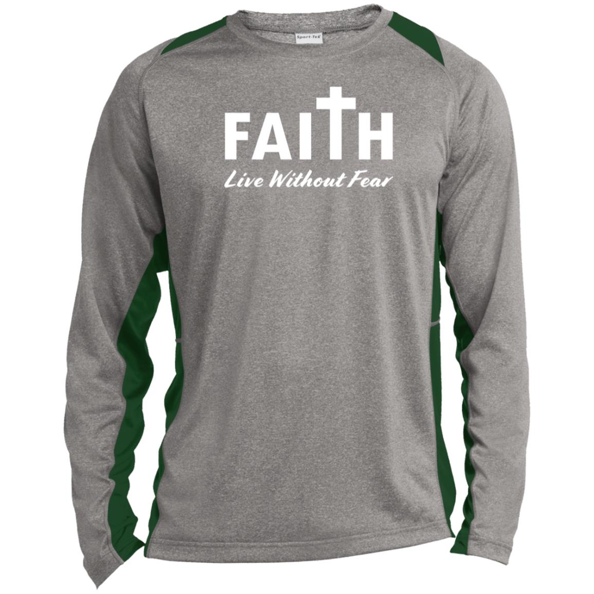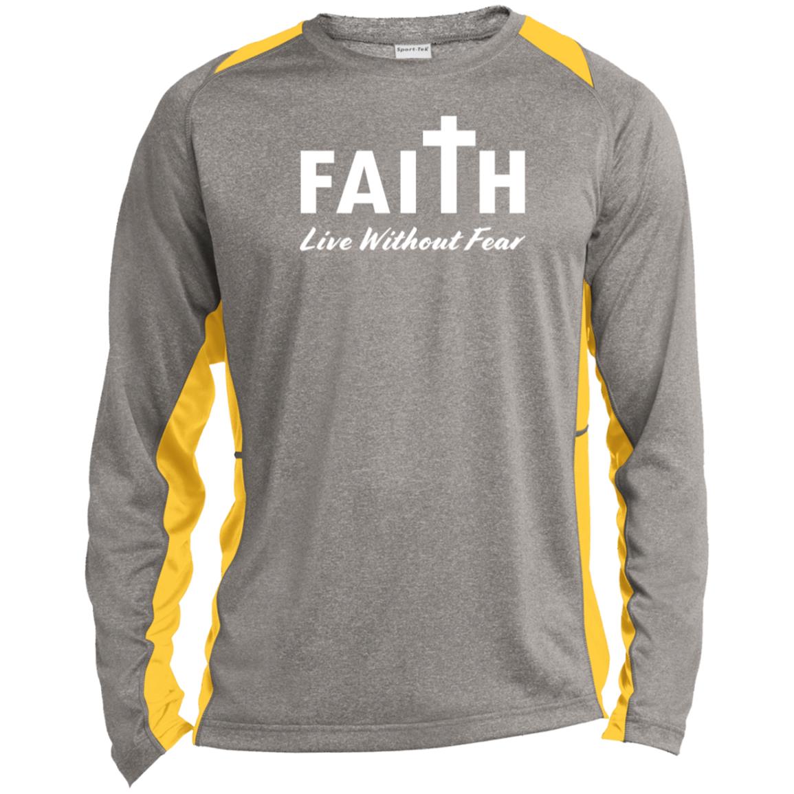Faith, Live Without Fear ST361LS Long Sleeve Heather Colorblock Performance Tee