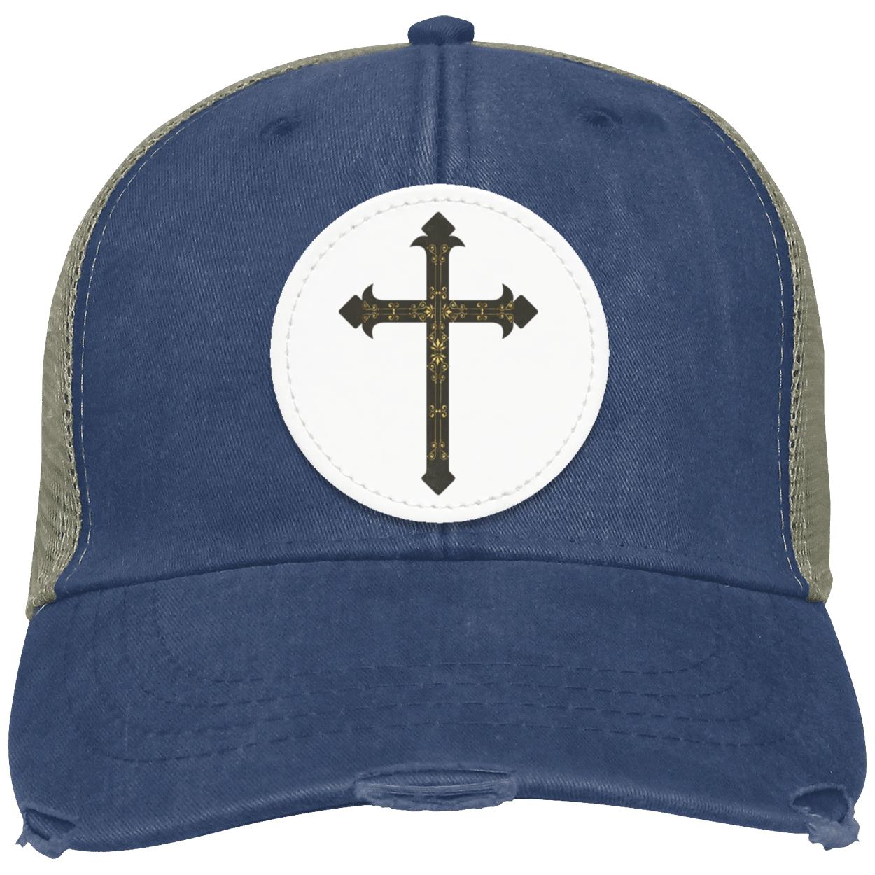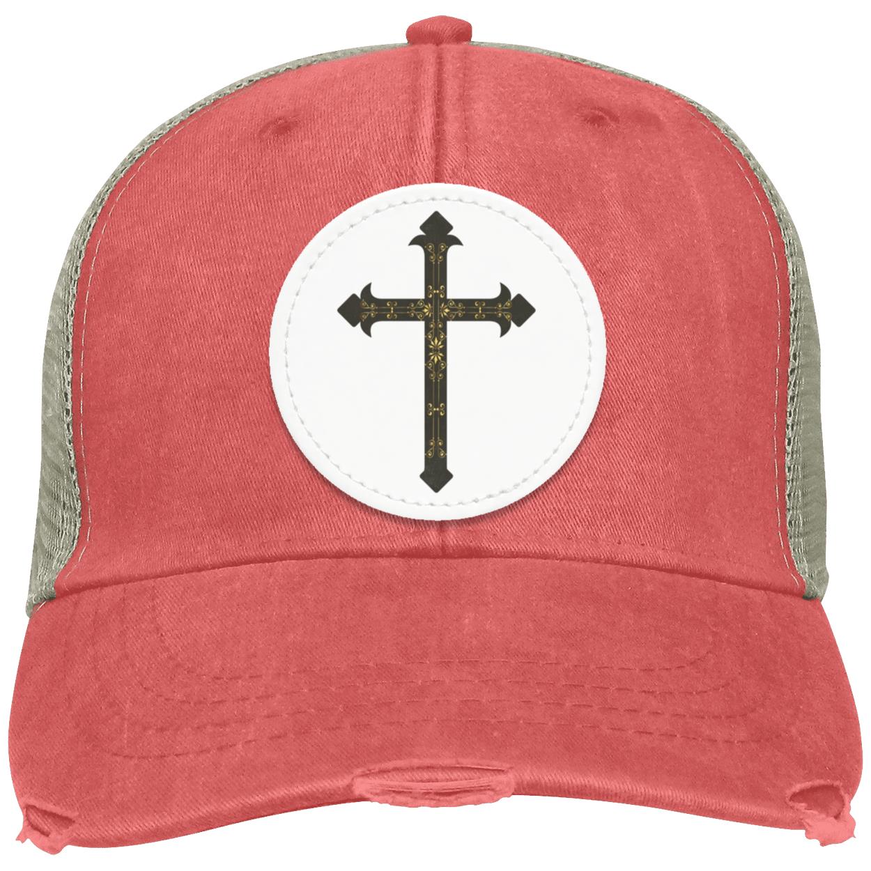 Fleur De Lis Cross Hat OL102 Distressed Ollie Cap
