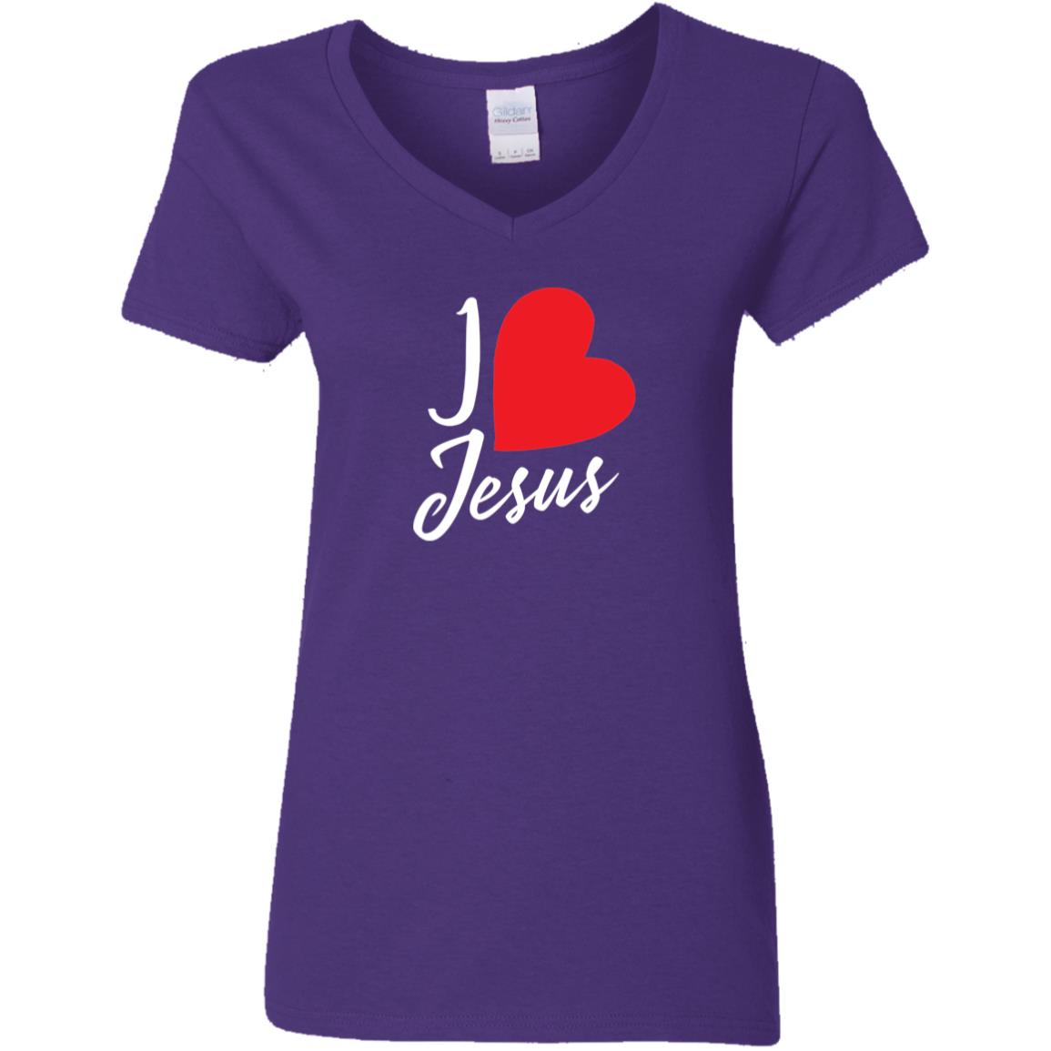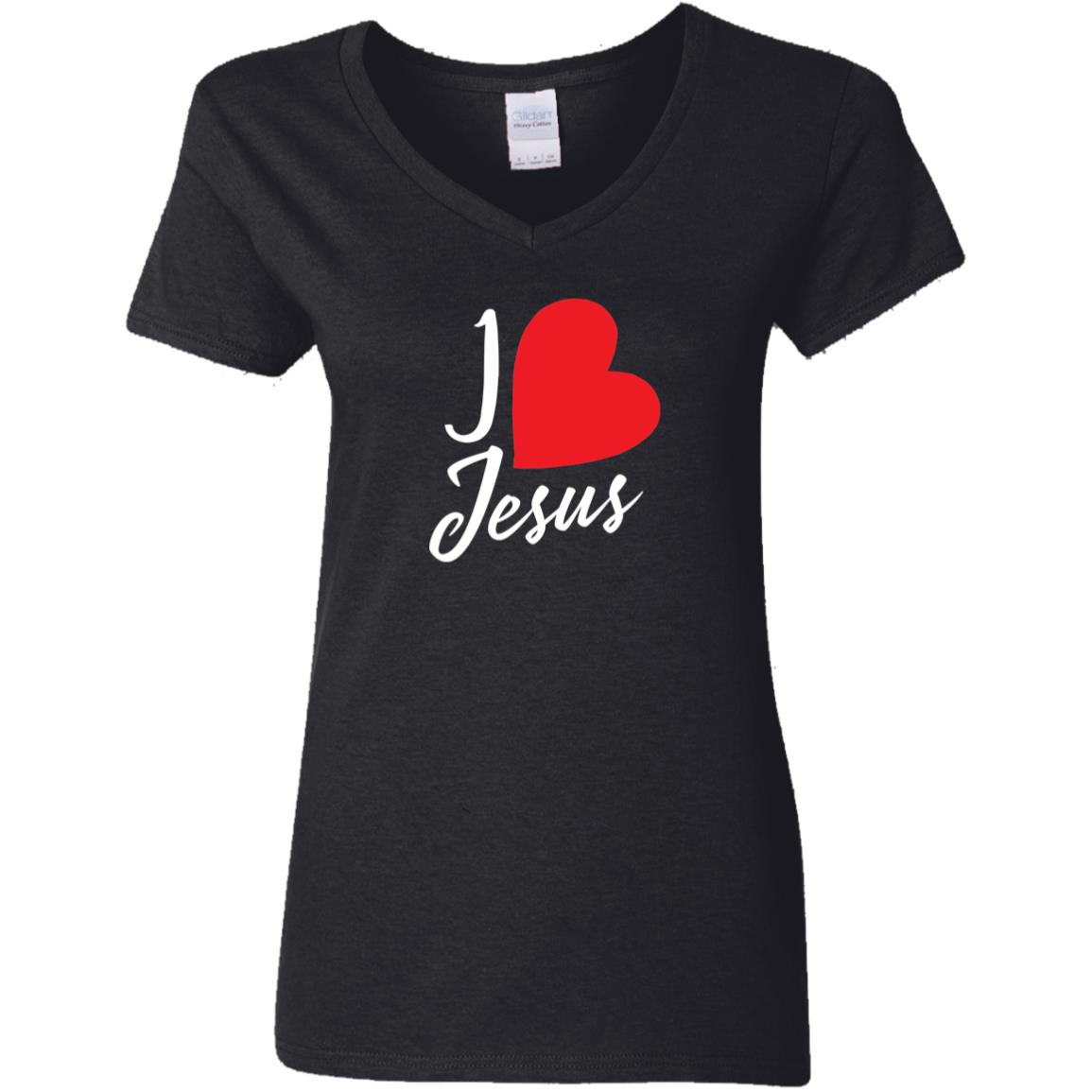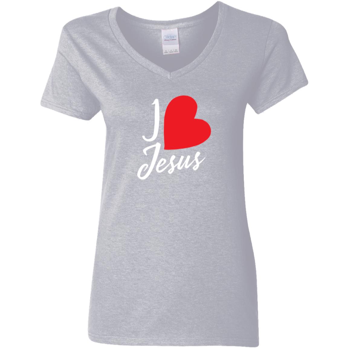 I love Jesus Heart G500VL Ladies’ 5.3 oz. V-Neck T-Shirt
